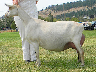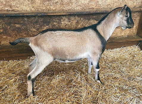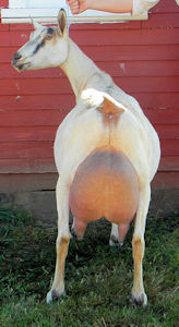 0000Astonishment is a beautiful young buck who is so correct that everyone comments on how nice he is when they visit the farm. He has a nearly idea rear leg set, straight fore legs and has a long flat bone pattern. His first kids have long flat bone patterns, are angular and dairy, with high wide escutcheons. I'm looking forward to watching them mature!