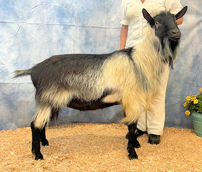 0000Enchanted is a strikingly correct young buck who is the spitting image of his sire Envoy. He is wide and deep with good general appearance and a beautiful alpine head. Enchanted's kids are all stylish, smoothly blended with good angle to the hock, have long level toplines with beautiful udders!