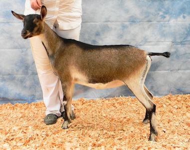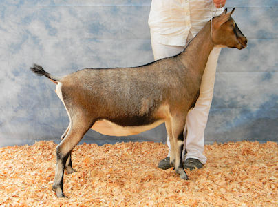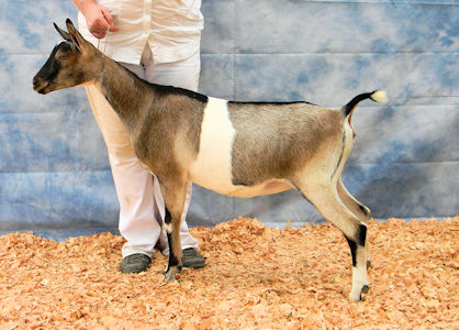 0000Envoy was presold as a kid and made his home down in Texas with Tamara Taylor's Patteran herd. A huge thank you to Tamara for allowing me to use him in my herd via AI. Envoy is a stylish and correct buck scoring an EX90 at appraisal. His full sister was one of the nicest does I've ever bred, CH YBNVS Jim Endora. Envoy already has one champion EX90 doe to his credit in Tamara's herd (pictured below). His first daughters in the YBNVS herd are long and level, smoothly blended through out, have high wide escutcheons, good angle to the hock and beautiful front ends. Although only kids, one daughter was Junior Champion and another Reserve Junior Champion so they're off to a good start!