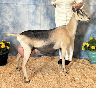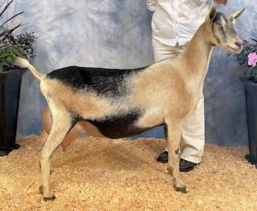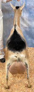 0000Kosetsu has her mother's long flat bone pattern, strong pasterns and amazing dairy character. She was born very late in the year but has matured nicely! Her mammary is high and wide in the rear and she has a lot of extension of fore. She has continued to deepen and widen as she matures while maintaining her alert gracefulness. |