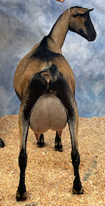 0000Limerick is a very graceful and stylish doe. She was always an eye-catching kid and freshened with a welded on mammary system. Limerick is long, level, sharp and angular with a great set of feet and legs. She’s already such a balanced milking yearling that I can’t wait to see her as a two year old.